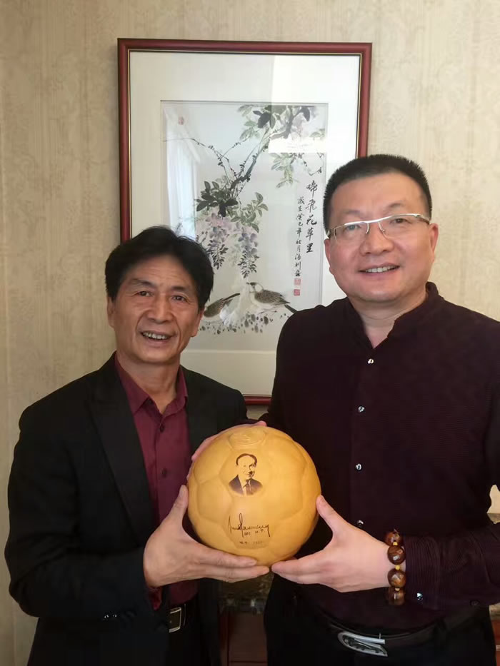 國內知名IT企業數字中國主席吳鷹的秘書長,看到一分田公司的足球葫蘆,給予了高度評價,并與查泰山先生合影留念。